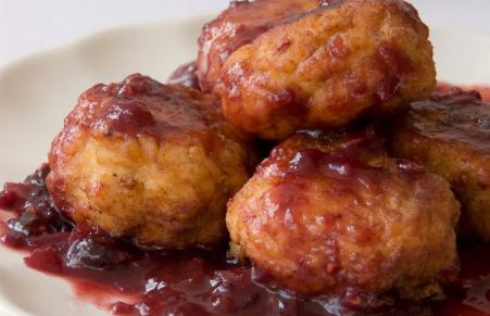 Albóndigas de pollo con salsa agridulce de frutos del bosque