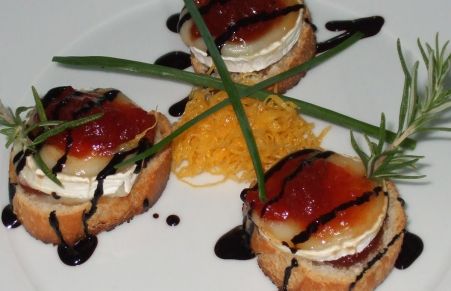Foie con queso de cabra y mermelada de tomate con albahaca.