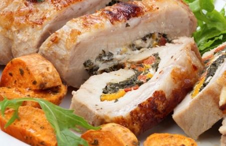 Carne de cerdo rellena de espinacas, pimientos y feta