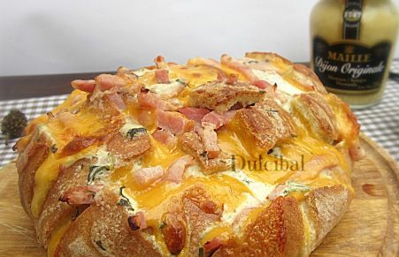 Esta es una receta americana que se suele preparar para picar, por ejemplo, mientras se ve un partido de fútbol. Su nombre es muy claro: Cheddar (el tipo de queso que lleva), bacon (obviamente, también es otro de sus ingredientes), ranch (es la salsa ranchera con la que se adereza) y pulls (el verbo, que significa tirar, estirar, dar tirones), es decir, es una hogaza o pan redondo que lleva queso cheddar, bacon y salsa ranchera y se come estirando o cogiendo porciones con la mano.