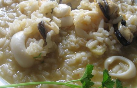 Hoy vamos a cocinar un arroz meloso, con calamares. Es un plato ligero, muy fácil de preparar pero que a la vez es muy rico. En este caso, utilizamos además de los calamares, mejillones y gambas pero podemos utilizar otros pescados o mariscos que tengamos en casa, y con los que podríamos preparar el fumé a utilizar para la cocción del arroz.