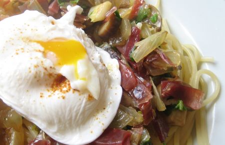 Es una pasta a la que el champiñón, el jamón y el huevo escalfado dan un toque muy sabroso y que os animamos a probar!
