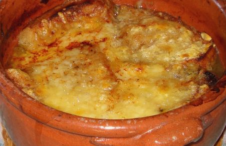 Tras una larga noche de fiesta, exceso de comidas y bebidas, para recuperar energía, una buena sopa de cebolla, es lo mejor.