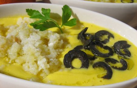 Cremoso de remojón con bacalao y AOVE