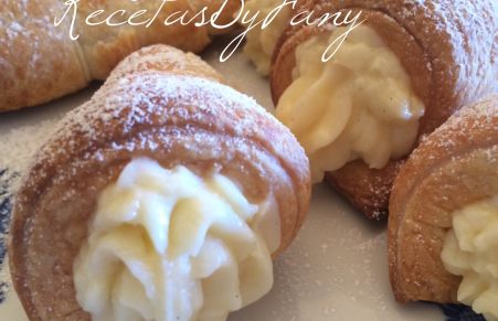 Son unas caracolas de hojaldre que se pueden rellenar de lo que queráis: nata, trufa o como yo he elegido esta vez para variar: Crema Pastelera.