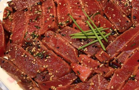 Tataki de atún macerado con soja y sésamo