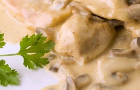 Pollo con nata, champiñones y bacon