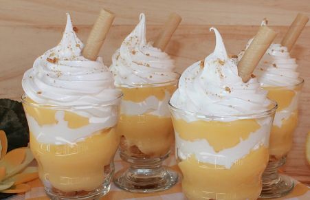 Incluso si no sois muy amantes del limón, lo podéis sustituir por naranja (zumo y ralladura de naranja), y de esta forma se consiguen unos deliciosos vasitos de merengue y Orang Curd (crema de naranja)