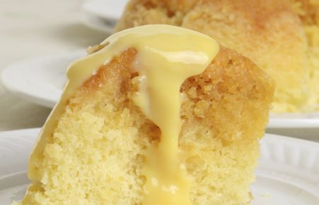 Sponge cake en microondas con crema inglesa