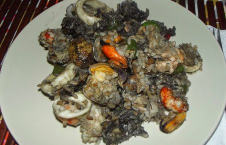 Arroz negro con sepia y gambas