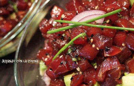 Busca todas las fotos que hemos recibido para esta receta de Atún marinado en cítricos, soja y miel sobre base de aguacate de Jugando con la Cocina.