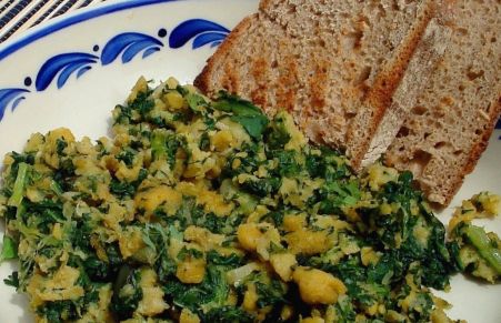 Revuelto de Harina de garbanzo con Acelgas y Cilantro