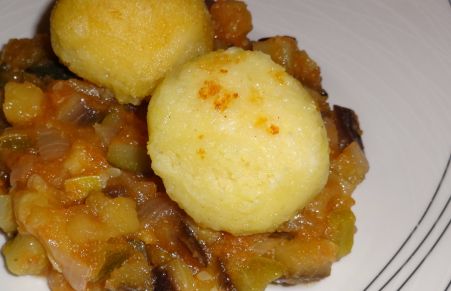 Bolas de patata y queso con pisto