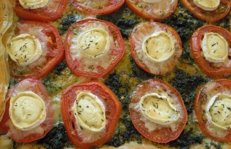 Es una pizza deliciosa...queda muy crujiente y sabrosa, el tomate con el queso es un bocado riquísimo, el pesto de espinacas y el tomillo, le dan un sabor especial.