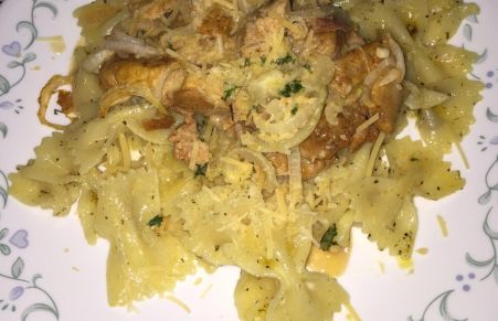 Pollo Tandori con corbatines de pasta