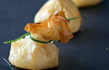 Para terminar bien la semana, os presento un entrante delicioso para el fin de semana, que además es muy fácil por lo que no tendréis que quebraros mucho la cabeza :). Aprovechando que tenía un par de láminas de pasta filo que me sobraron de otra receta elaboré estos saquitos de queso de cabra y miel, que a la foto me remito de la pinta que tienen: