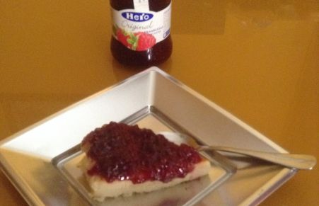 Exquisita tarta de queso con recubrimiento de mermelada de frambuesa o al gusto