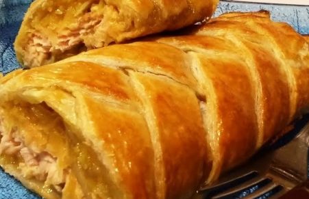 Estupendo pastel salado de pescado. Trucha asalmonada con cebolla caramelizada a la naranja, una mezcla de sabores que invita a repetir.