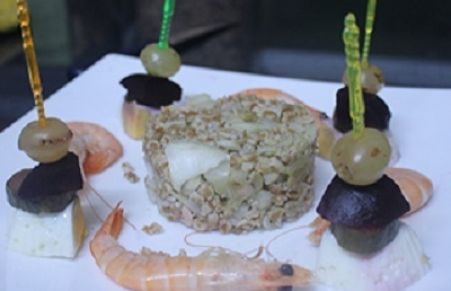 Espelta con gambas y pinchos