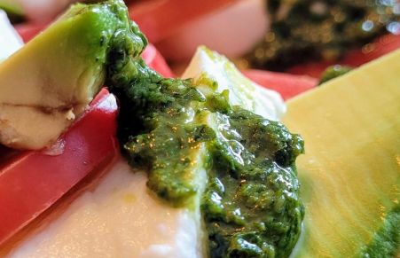 Esta ensalada está hecha con ingredientes sanos es perfecta como entrante, ya verás que nadie quedará indiferente, la mezcla de sabores y texturas y el toque del pesto hacen que sea una explosión al paladar.