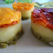 Canelón de jamón cocido con verduritas y timbal de patata y tomate