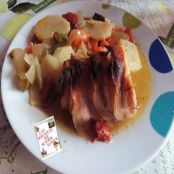 Solomillo de cerdo envuelto con bacon al horno con verduras