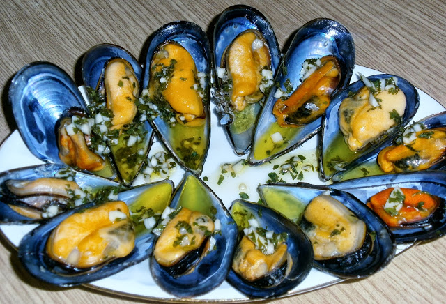 Lavar un poco los mejillones, hacerlos al vapor, quitar las valvas y reservar