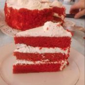 - 180gr de mantequilla, 200g de azúcar, 3 huevos, 450g de harina, 40g de cacao en polvo, 3 ml de leche, 2 cucharadas soperas de levadura, colorante rojo, 1 cucharadita de bicarbonato, 2 cucharaditas de vinagre, una pizca de sal. 3 cucharadas soperas de granadina.