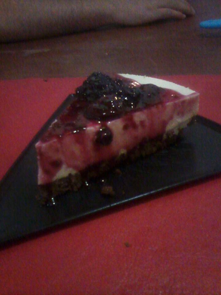 Tarta de queso con frambuesas y mermelada de frutos rojos