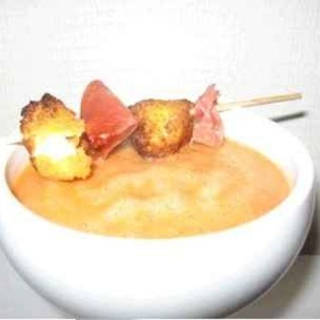 Una vez que el tomate y la manzana estan cocidas, pasar todo en la batidora y añadir la nata.