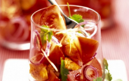 Ensalada de tomates, pollo y jengibre