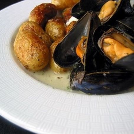 Cuando los mejillones están abiertos, agreguar la crema de queso roquefort, mezclar bien y servir inmediatamente.