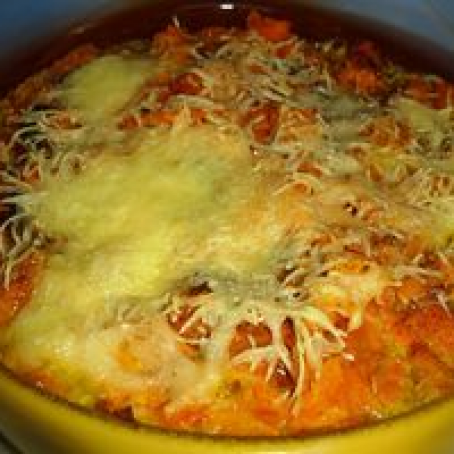 Para la salsa: Derretir la mantequilla, añadir la harina y remover constantemente a fuego lento durante 2 min. Retira del fuego. Añade poco a poco la leche mientras revuelves. Volver al fuego y batir 3 minutos. Agrega 2/3 del queso rallado y el polvo de curry, perejil y sazona al gusto.