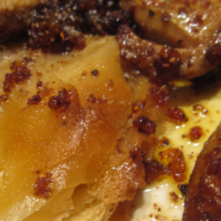 En la misma sartén pasar las hojas de pasta filo unos segundos, una sobre la otra. Colocarlas sobre el foie gras.