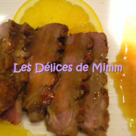 Desglasar la sartén con la elaboración de zumo de naranja. Reducir ligeramente y espesar con un poco de almidón de maíz si es necesario.