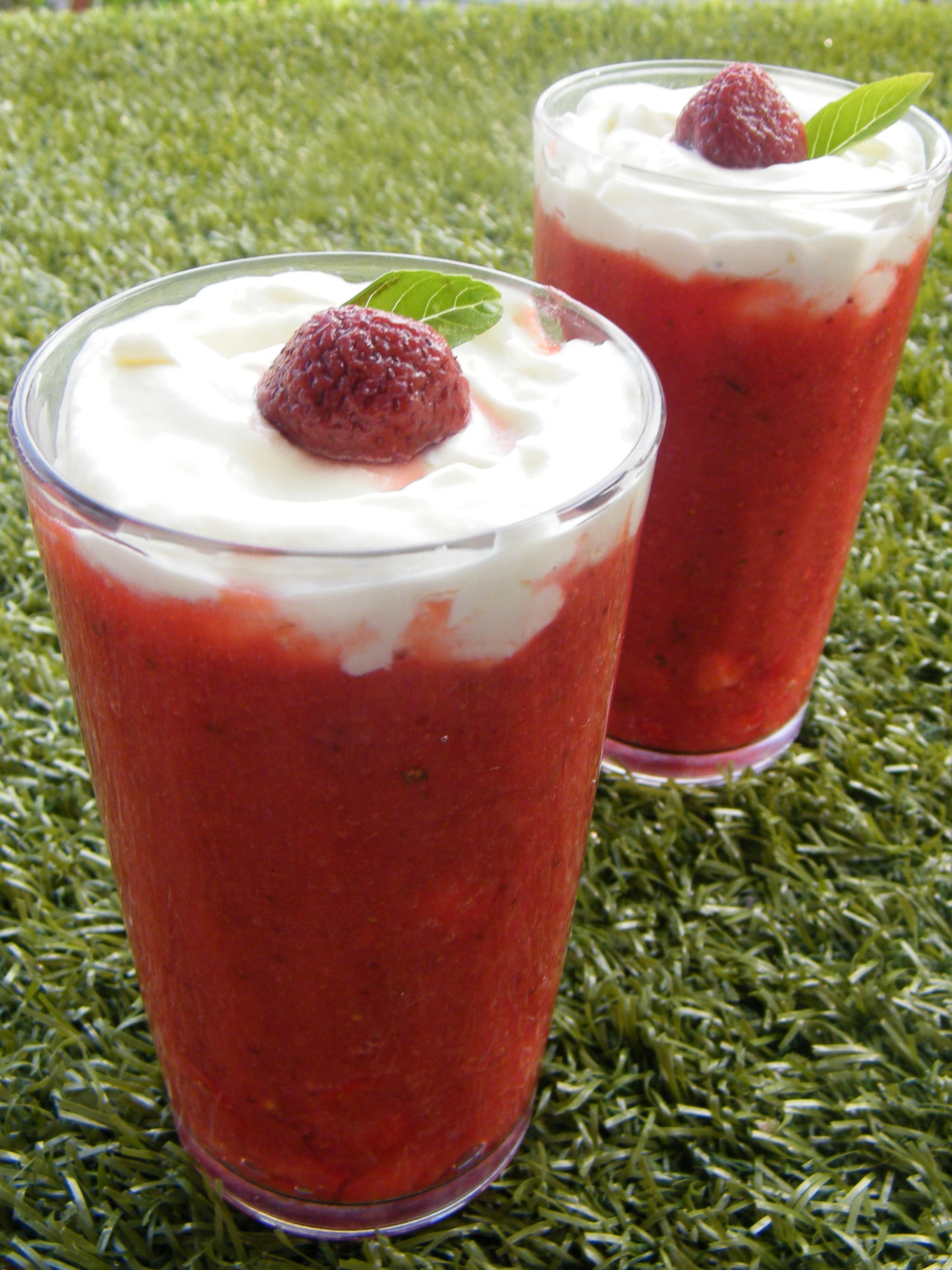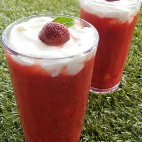 Gazpacho de fresas con albahaca y crema