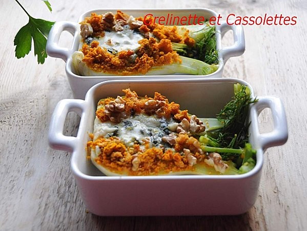 Cuando el hinojo esté cocido, colocar cada mitad en una cazuela individual. Salpimentar. Cubrir generosamente ronda de Roquefort y depositar la mezcla de pan de jengibre, la cúrcuma, las nueces. Gratir en el horno y servir caliente ...