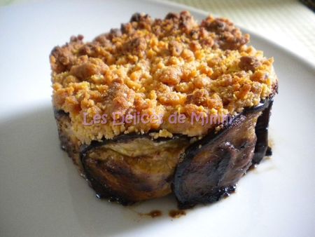 Charlotte de berenjena y crumble de queso parmesano