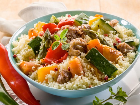 Preparamos el couscous en una cacerola con agua, sal y mantequilla. Mientras tanto podemos ir picando todas las verduras y las ponemos a cocinar en una sarten con aceite de oliva.