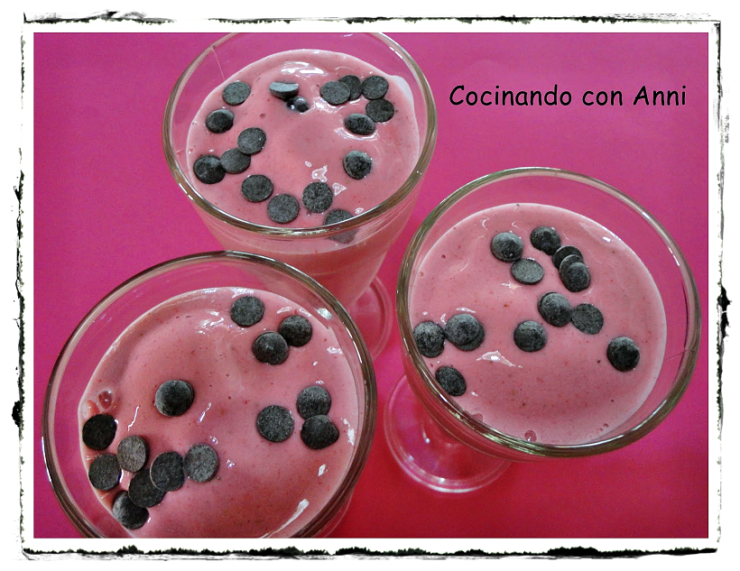 - Las echamos en la batidora, añadimos la leche y trituramos hasta conseguir un batido cremoso.