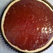 Batimos los huevos con el azúcar y la harina. Cuando está cremoso, añadimos el chocolate con la mantequilla. Vertemos esta mezcla sobre la base y horneamos unos 20 minutos, hasta que al pinchar un palillo sale seco.