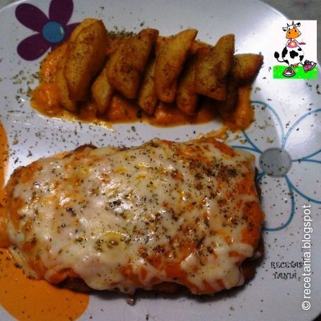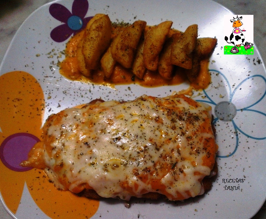 Milanesa de pollo con napolitana y papas gajos
