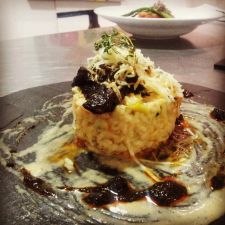 Arroz cremoso al curry con salteado de robellón y berros tiernos
