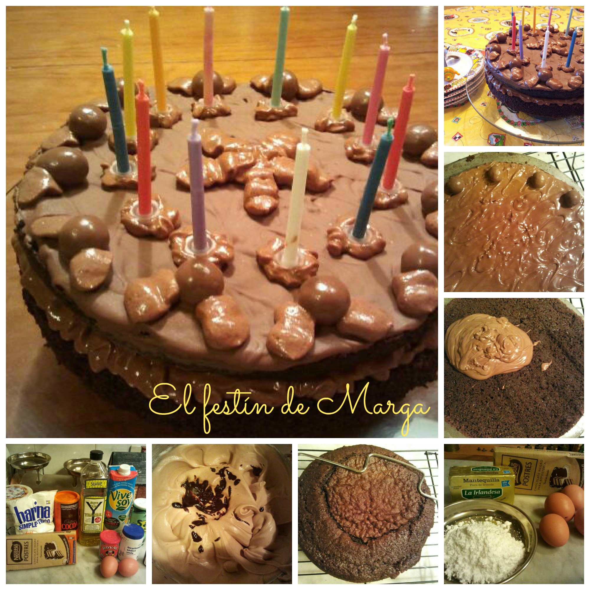 Esta tarta de chocolate está riquísima. Si hay unas tartas que no soporto, son las de bizcocho, con una o varias capas de crema. Me da igual del sabor que sea el bizcocho o la crema. Me da también igual si el bizcocho va borracho o no. Me resultan insípidas y sequísimas. Y si llevan una cobertura de mantequilla por fuera, aún me gustan menos. Así que esta tarta no es nada de eso. El pastel de chocolate que le sirve como base, no tiene nada que ver con el bizcocho de chocolate. Es totalmente jugoso y meloso, no es muy dulce y tiene un intenso sabor a chocolate. Y, en vez de la típica crema de relleno, lleva mousse de chocolate. Y la cobertura, simplemente chocolate, sin añadidos.