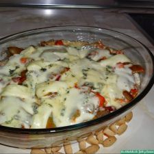- Dispón las verduras sobre una bandeja ligeramente engrasada. Agrega los camarones.
