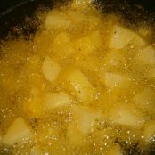 Cortamos las patatas en tacos y las freímos las ponemos en la base del plato.