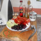 Lavar y deshuesar las cerezas. Limpiar y partir las verduras (no hace falta picar nada).