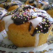 Magdalenas de limón rellenas de piña y recubiertas de chocolate y almendra crujiente