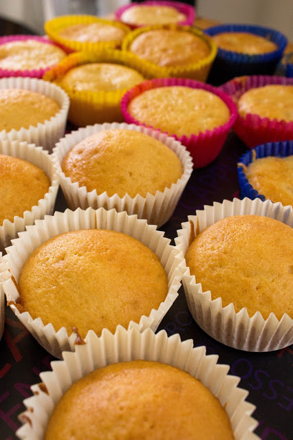La segunda tanda de magdalenas las he hecho sin relleno. La diferencia se ve clara, las que no tenían relleno quedan mas hinchaditas y redondas, mientras que las rellenas quedan planitas.