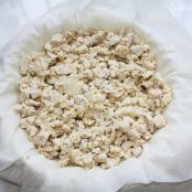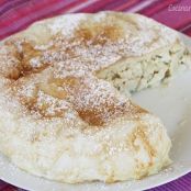 Una vez hecho esto cerramos la pastela, simplemente juntando todas las puntas en el centro y para lo que podemos ayudarnos con unas gotas de agua o bien pincelándola con huevo batido. Le damos la vuelta con cuidado (ya que las láminas podrían rasgarse), ayudándonos con el recipiente donde estaba.